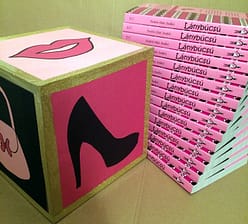Azt is megmutatom, mit varázsoltam a könyvespolcból: a könyvből vett grafikákkal díszített fiókok ajándékokat rejtettek, amelyből minden vásárlóm kapott egyet aszerint, hogy mit dobott a dobókockával.